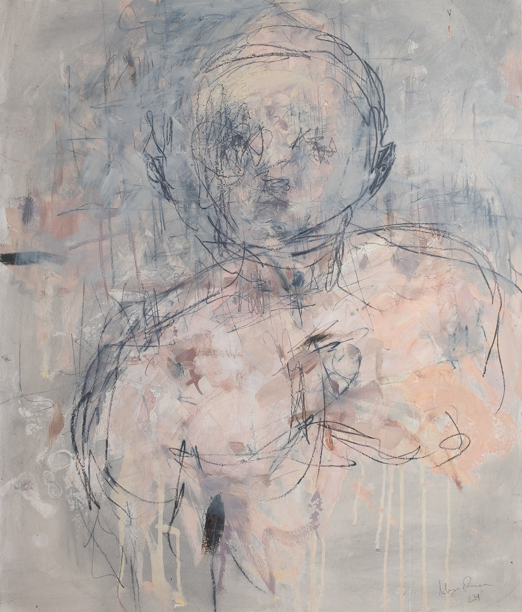 Pencil and Oil on Panel